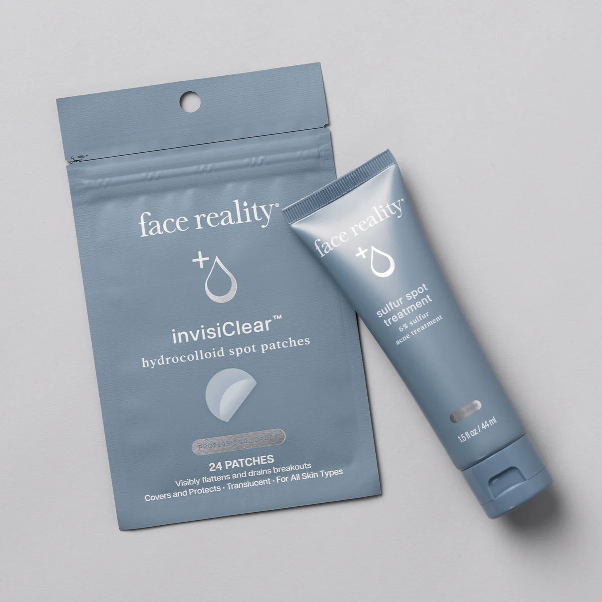 Breakout emergency? This duo delivers on-the-spot results. Sulfur Spot Treatment dries down invisibly on skin for discreet, targeted care. Our transparent invisiClear™ Hydrocolloid Spot Patches drain, absorb, and flatten blemishes while protecting skin from picking and external aggressors & debris.